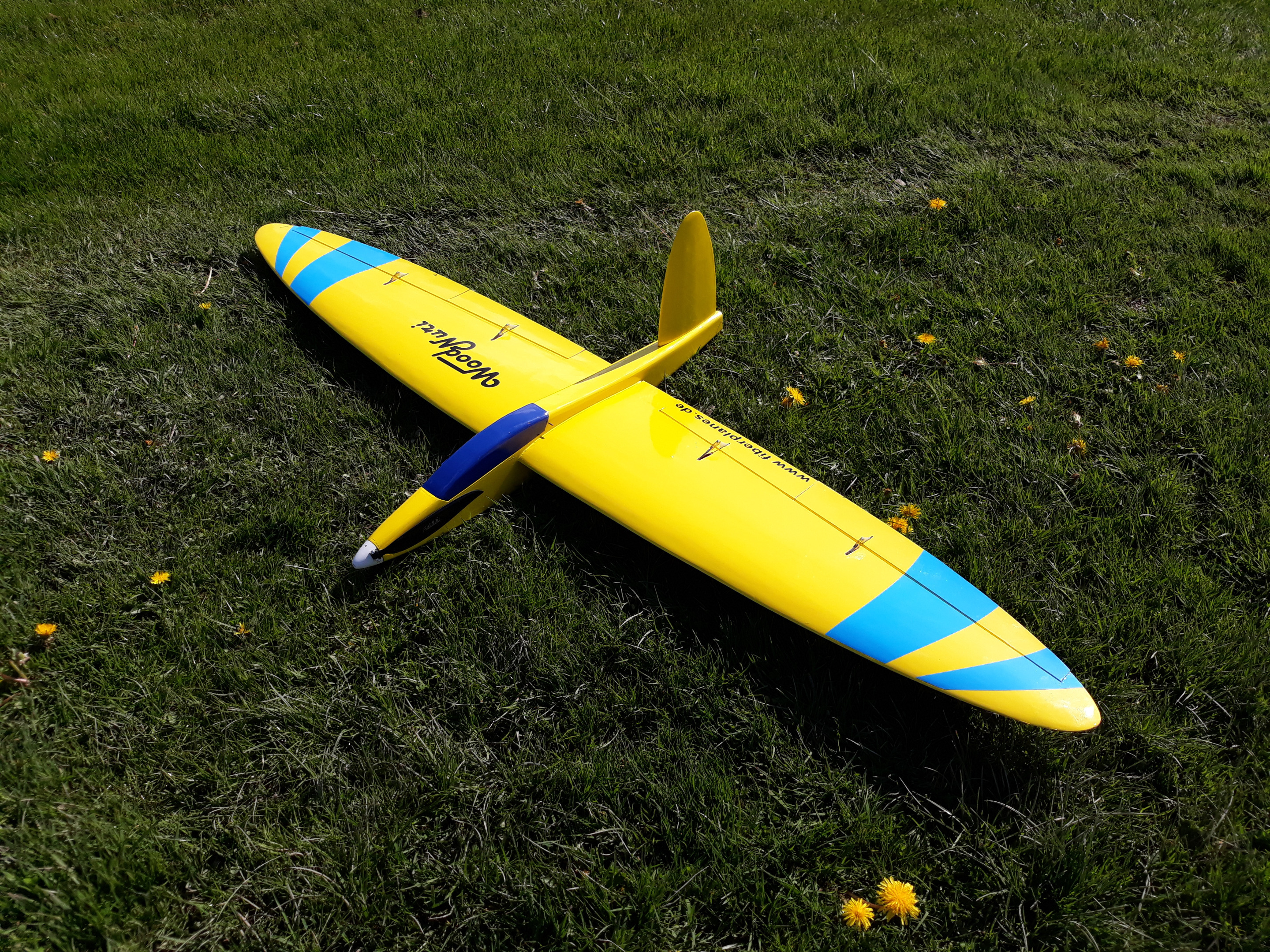 Die Seglerversion, das Material für die Rumpfnase liegt ebenfalls bei, hat ein Abfluggewicht von ca. 1300g.